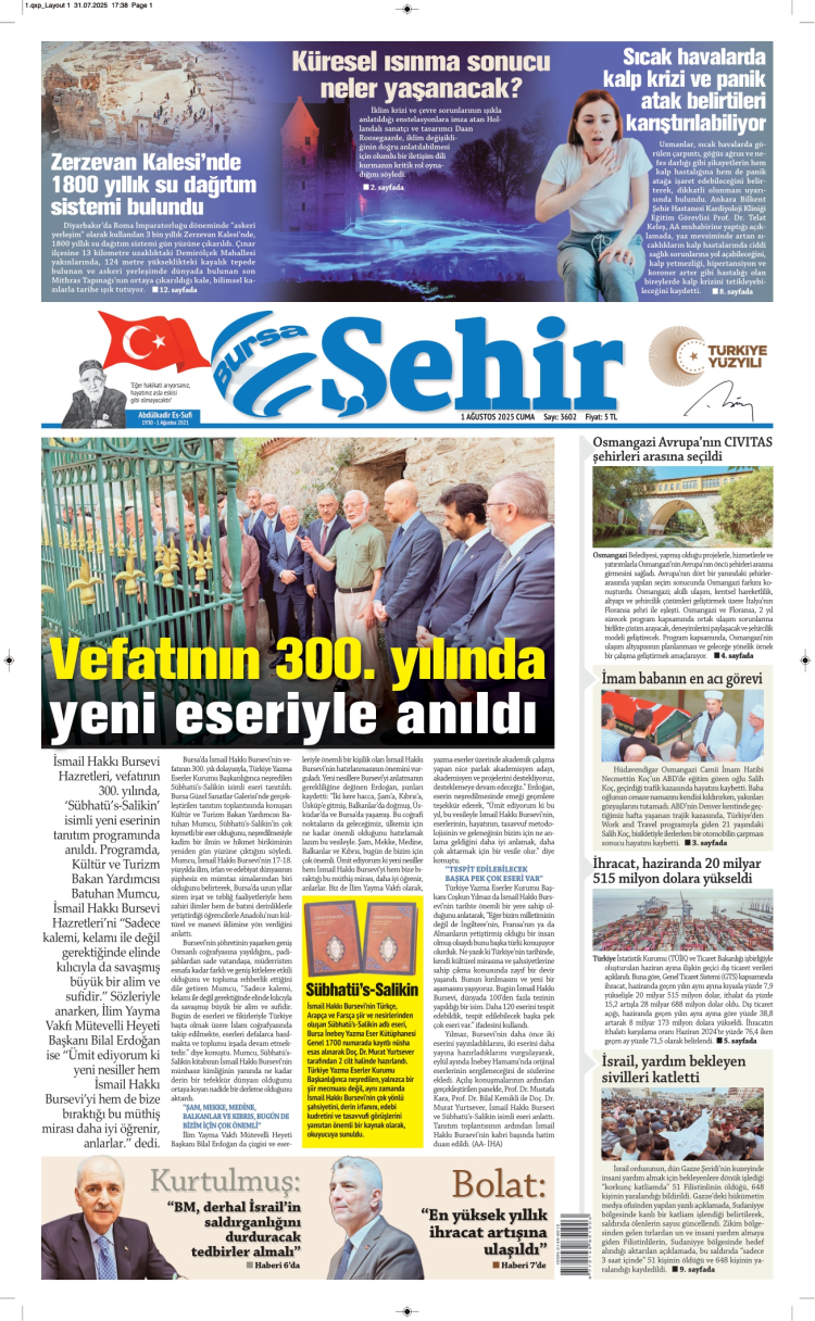 BURSA ŞEHİR GAZETESİ 01.08.2025 Yayını