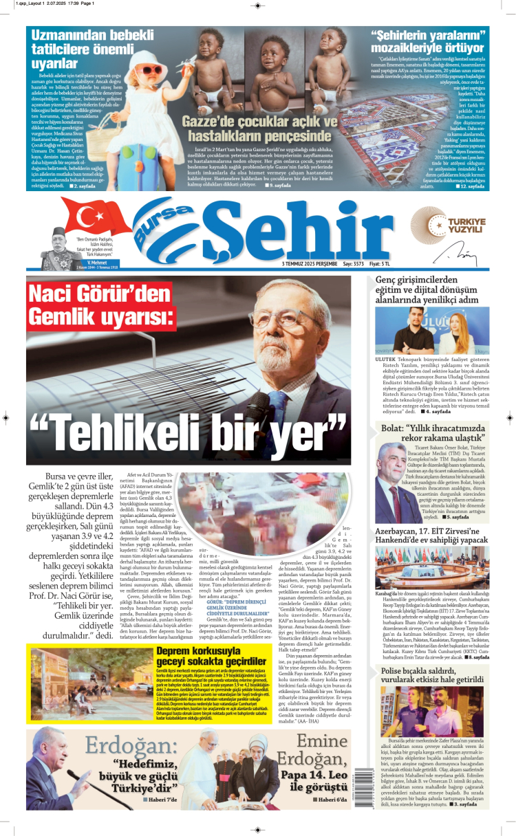 BURSA ŞEHİR GAZETESİ 03.07.2025 Yayını