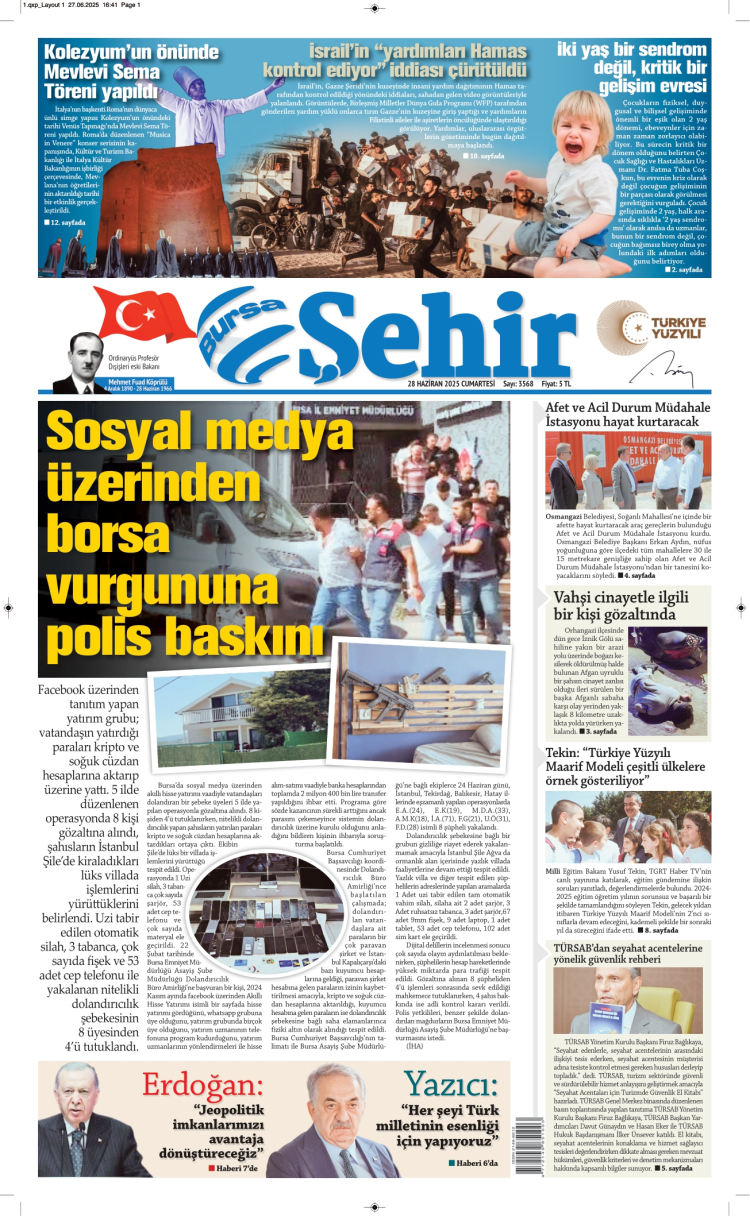 BURSA ŞEHİR GAZETESİ 29.06.2025 Yayını