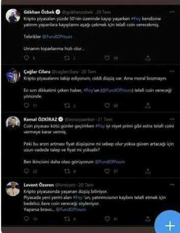 İşin daha vahim tarafı ise eşeleyince bu tiplerin birbirini dakikada bulduğu da ortaya çıkıyor. Sosyal medyada “Ankara Kuşu'' olarak tanınan Oktay Yaşar’ın kurduğu FOY COİN/FOYTOKEN 16 milyon TL’yi aşkın vurgunla battı. İşin medya ayağı ise Çağlar Cilara, Kemal Özkiraz, Gökhan Özbek ve Levent Özeren.