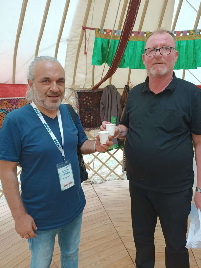 Düz bir arazide kurultay için oldukça güzel hazırlanmış bir arena ve oldukça büyük bir alana yayılmış oba çadırları ile dolu. Alana girerken Büyük Türk imparatoru Atilla’nın posterleri karlışıyor gelenleri. İliklerinize kadar bir Türk toyunda olduğunuzu hissediyorsunuz. Oldukça iyi çalışılmış, görseli kurgulanmış, akış planlanmış.