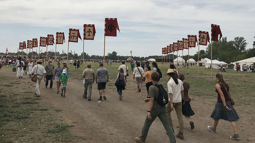 Alanda kırbaç vuranlar, atlılar, bayrak ve sancak taşıyanlar, birbirinden ilginç kıyafetlerle boy gösterenler. Türk kökenli milletlerin buluşma alanında simgelerin tamamı Türk simgeleri olarak göze çarpıyor. Örneğin dini simgelere rastlamadık. Topluluklar arasında sadece Müslüman Türkler değil, Hıristiyan ve Musevi olanların yanı sıra farklı dinlere mensuplar da var.