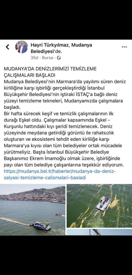 Bu kez de Bursa Büyükşehir Belediyesi yerine İstanbul Büyükşehir Belediyesi’nin yolunu tuttu dolayısıyla Türkyılmaz. Sanki kendi sahillerinde sorunu çözmüş gibi Ekrem İmamoğlu, tutmuş temizlik aracı göndermiş Mudanya’ya ama geç geldi maalesef o araç. Bursa Büyükşehir Belediyesi çoktan başlamıştı temizliğe.