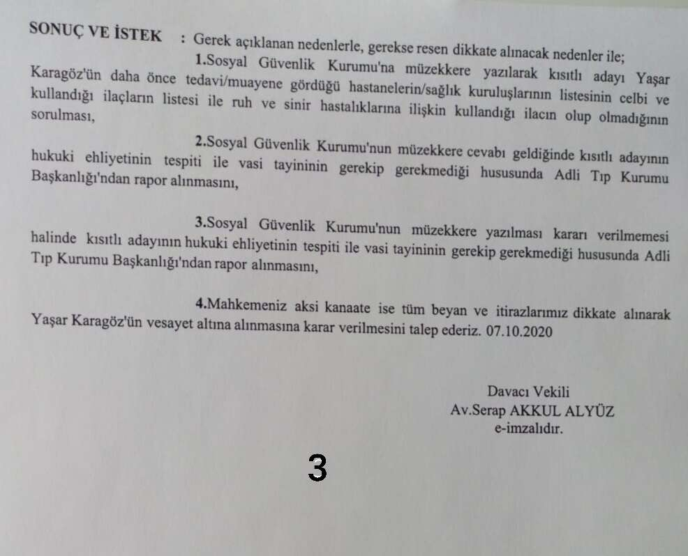 “Sevgili kardeşim Alpaslan, hakkımda bu yazıyı yazıp beni onore etmiştin. Benim hakkımda Hayri'nin (Türkyılmaz) açtığı "kısıtlama " davası nihayet sonuçlandı. İki kere istinafa gittiler.